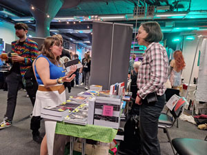 Naša stojnica je vzbudila precej pozornosti. Po 13 letih od zadnje slovenske udeležbe na Euroconu (tudi leta 2012 sem bil del ekipe v Zagrebu) smo se znova pojavili in predstavljali najmanjšo s stojnico prisotno državo. Z Dominikom sva poskrbela za profesionalno promocijo, saj sva imela ves promocijski material v angleščini. Na stojnici je našla prostor tudi v angleščino prevedena knjiga Bojana Ekselenski (Underspace - The First Bojan Dawn There).