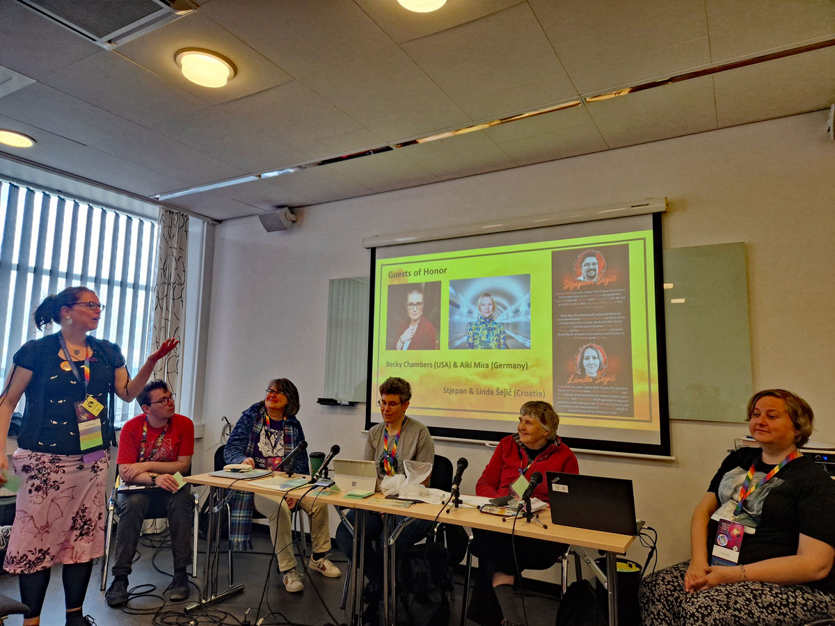 Med udeleženci in v vlogi predavateljice je bila na sceni zelo znana in večkratna Hugo nagrajenka Cherly Morgan (prva transspolna oseba s Hugo nagrado). Osebno jo občudujem, ker svojo posebnost predstavlja kot prednost in jo je pretopila v zanimiv opus aktivnosti. Njena predavanja so vedno polna, saj prinaša obilje vsebinske svežine in novih pogledov na posamezne družbene aspekte.