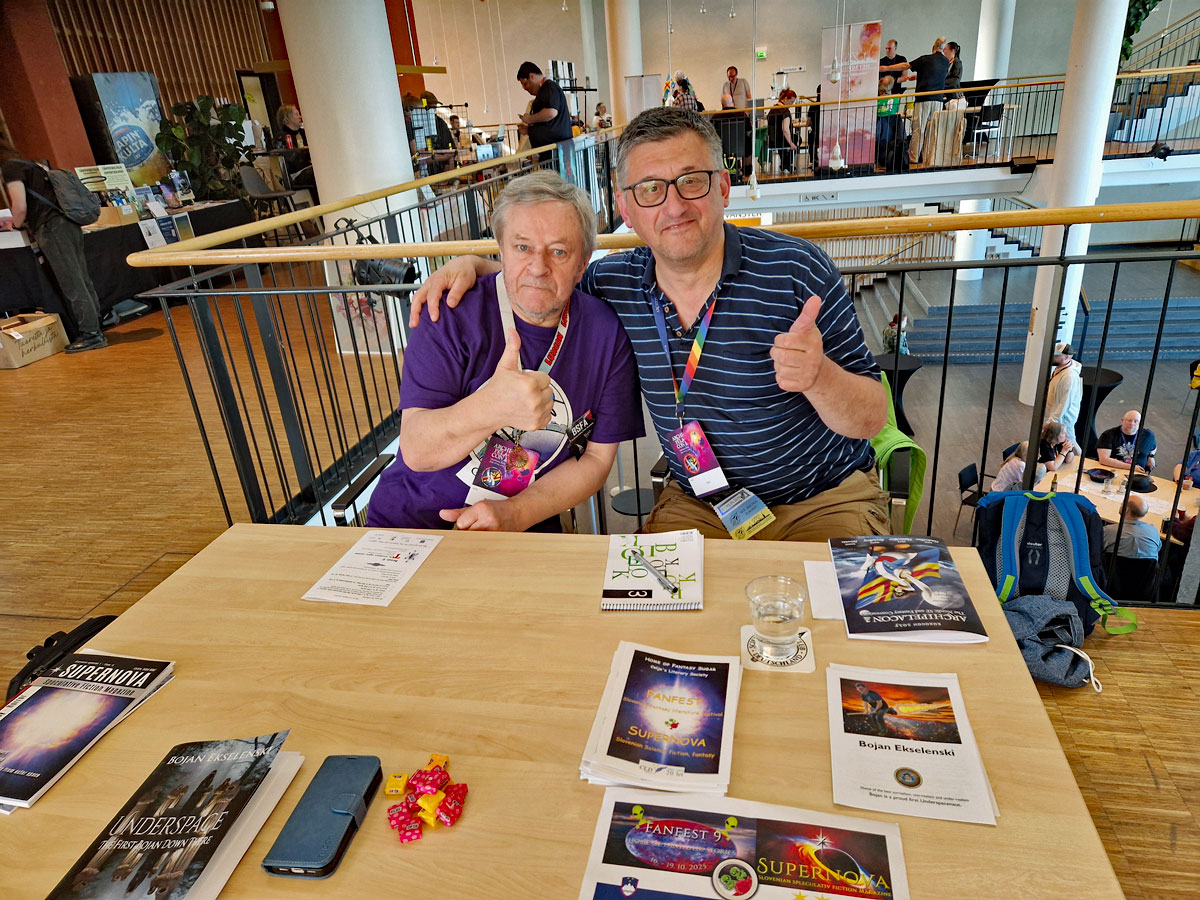 V soboto, ob 14h smo člana CLD (Bojan Ekselenski in Dominik Lenarčič) in gosta iz Hrvaške (Eric Jonasson in Filip Hanžek) predstavili Supernovo, Fanfest in regionalno zbirko Besan 5 – priče za besanu noć.