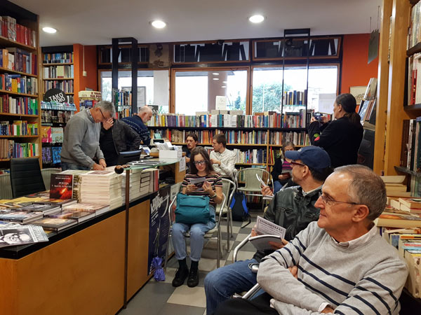 Zbiranje v prisrčnem okolju knjigarne Antike, zdaj že tradicionalni uvodni lokaciji festivala