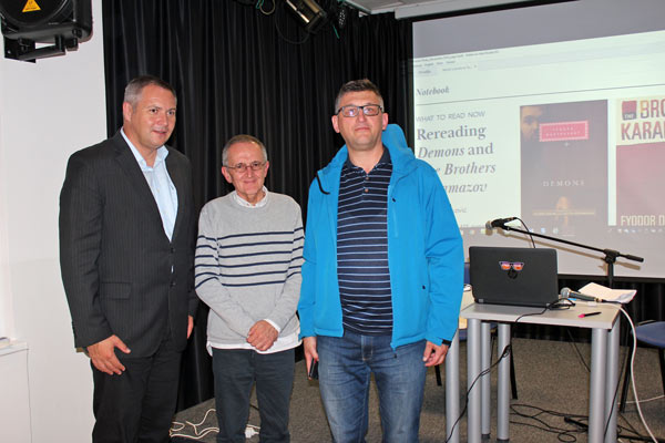 Zatem je prebral še zanimiv prispevek, ki bo objavljen v novembrski številki priznane literarne revije World literature Today What to read now Rereading Demons and The Brothers Karamazov.
