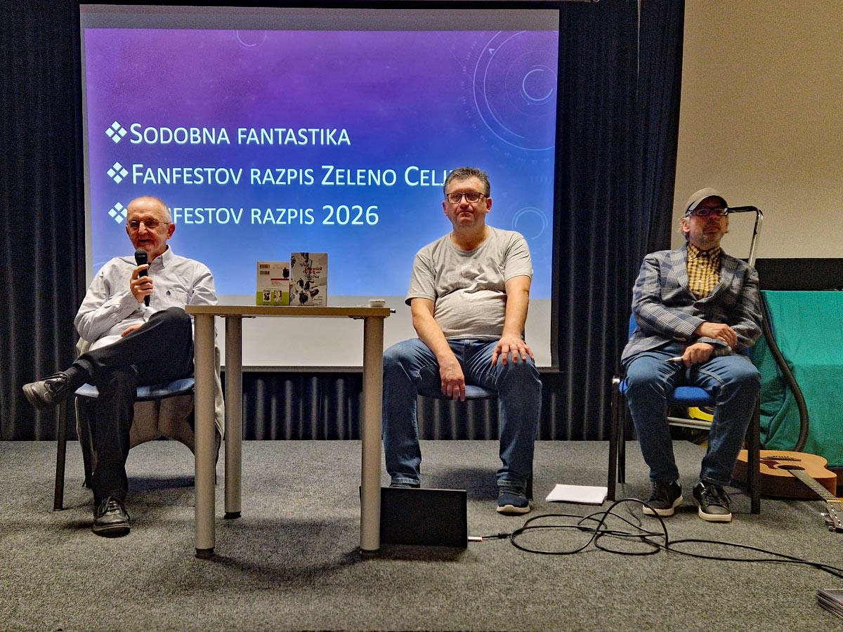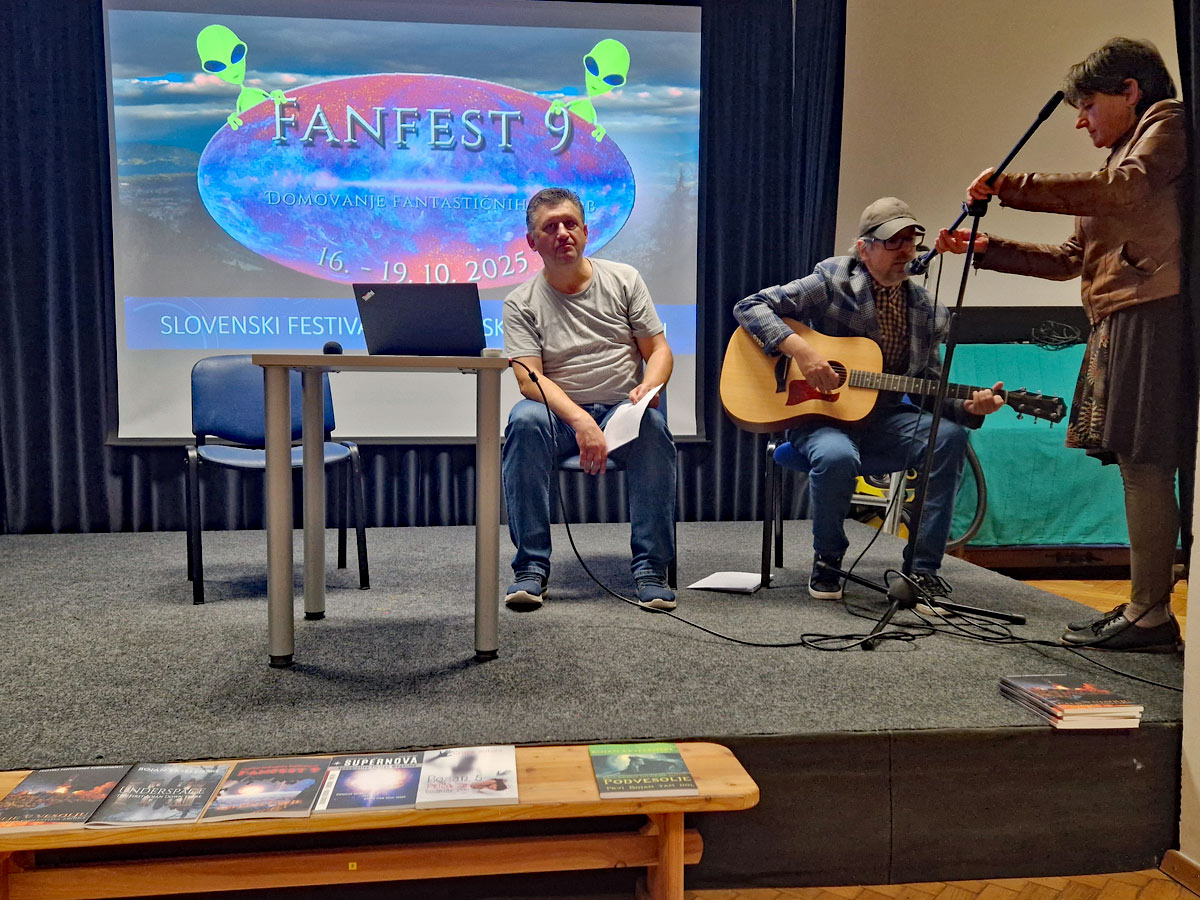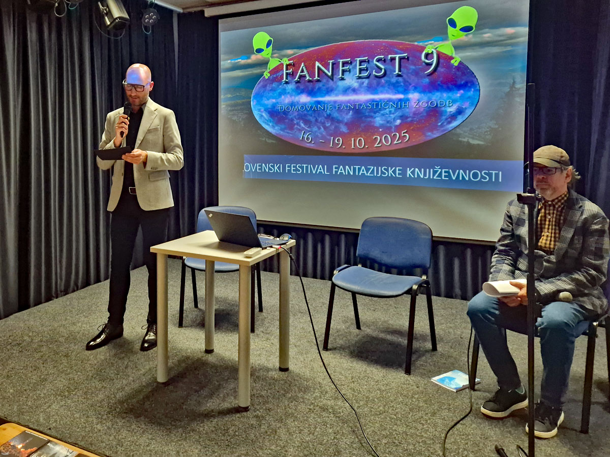 Bojan Ekselenski presented an overview of recent Slovenian speculative fiction releases, introduced all three 2025 issues of the Supernova magazine, and shared where Fanfest had been showcased throughout the year.